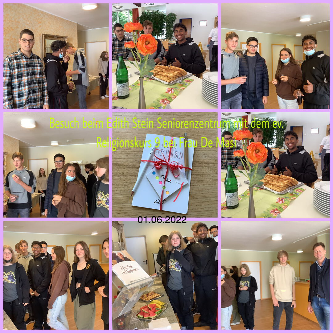 Stein-Hauses pflegen, haben wir (der evangelische Religionskurs der neunten Klassen mit unserer Lehrerin Frau De Masi) am 01.06.2022 eine Exkursion dorthin gemacht, um die Bewohner*innen besser kennenzulernen und Eindrücke vom Leben im Altenheim zu sammeln.