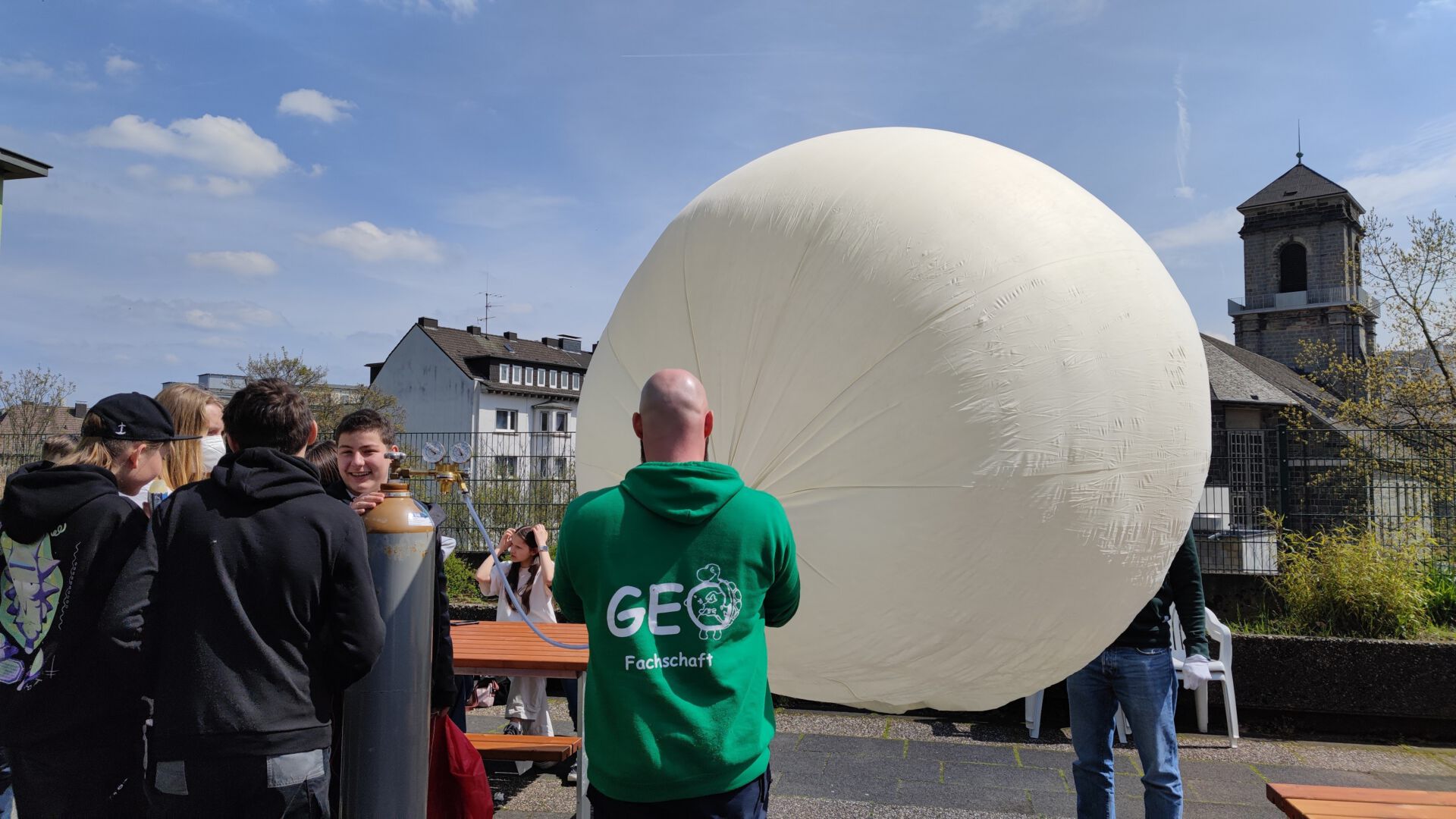 Klimadaten sammeln: Im Rahmen des Projekts „Dem Stadtklima auf der Spur“ ließen die Schüler*innen gemeinsam mit dem GeoIT-Schülerlabor der Bergischen Uni einen Wetterballon in die Stratosphäre aufsteigen. // Fotos (5) Katrin Spinnrath