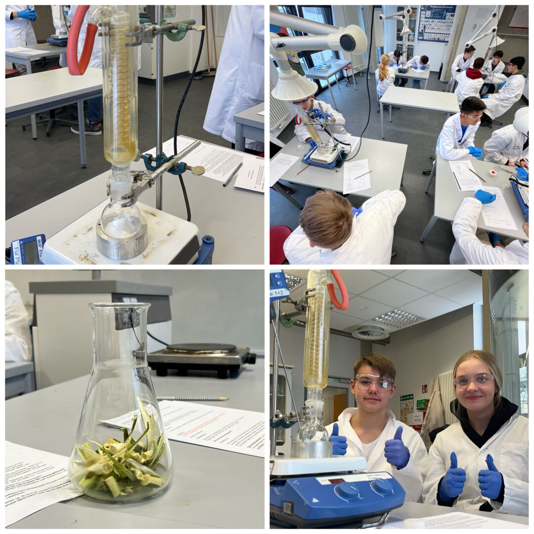Am 15.01.2024 nahmen die an Chemie interessierten 10er an der Exkursion „Pharmalabor - die Synthese von Aspirin“ an der Junior Uni teil. Dort haben sie das bekannte Schmerzmittel Aspirin auf zwei verschieden Weisen selbst produziert. Einmal auf die natürliche Weise mit der Weidenpflanze und danach auf die chemische Weise. Die Schüler haben mit Salicylsäure, Essigsäurenhydrid und konzentrierter Schwefelsäure gearbeitet. Während den faszinierenden Experimenten durften die Schüler Protokolle führen und schließlich mit vielen neuen Erfahrungen nachhause gehen.