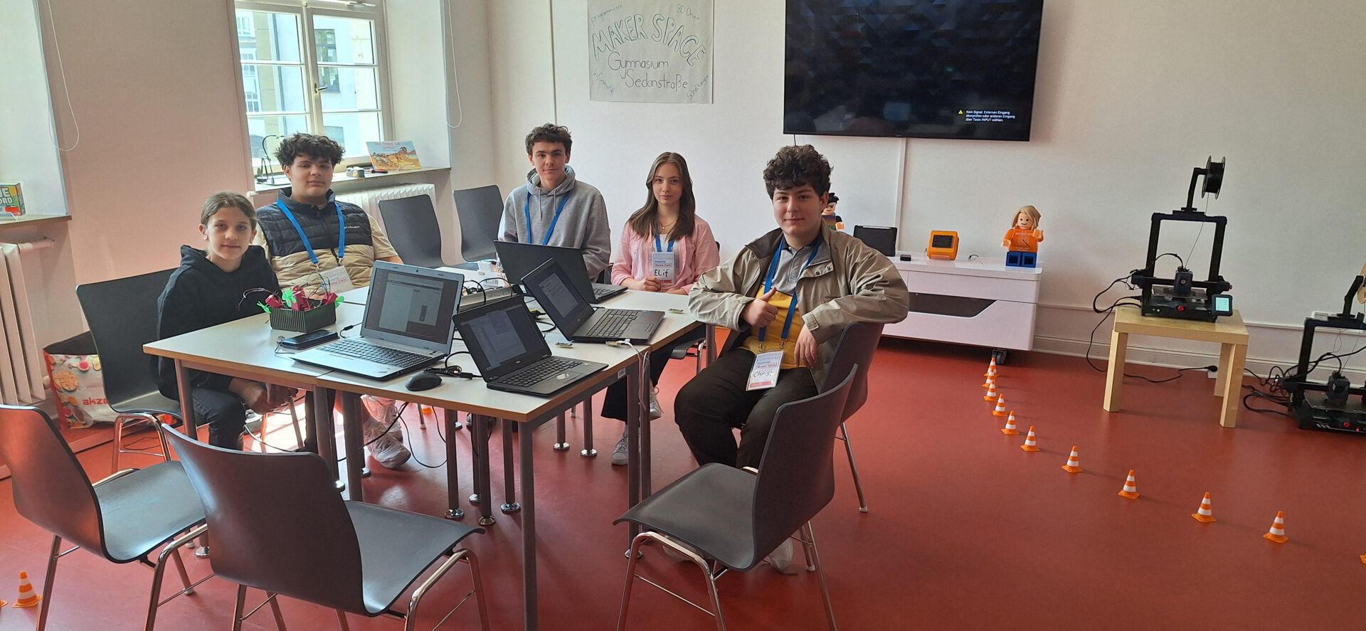 Fünf Schülerinnen und Schüler des Informatikkurses der 9. Klasse haben am Freitag die Makerfaire in der Stadtbibliothek Wuppertal besucht und dort ihre Unterrichtsprojekte präsentiert. Die Veranstaltung, die im Rahmen des Digitaltags 2024 stattfand, bot ihnen eine großartige Gelegenheit, ihre Arbeiten einem breiten Publikum vorzustellen.