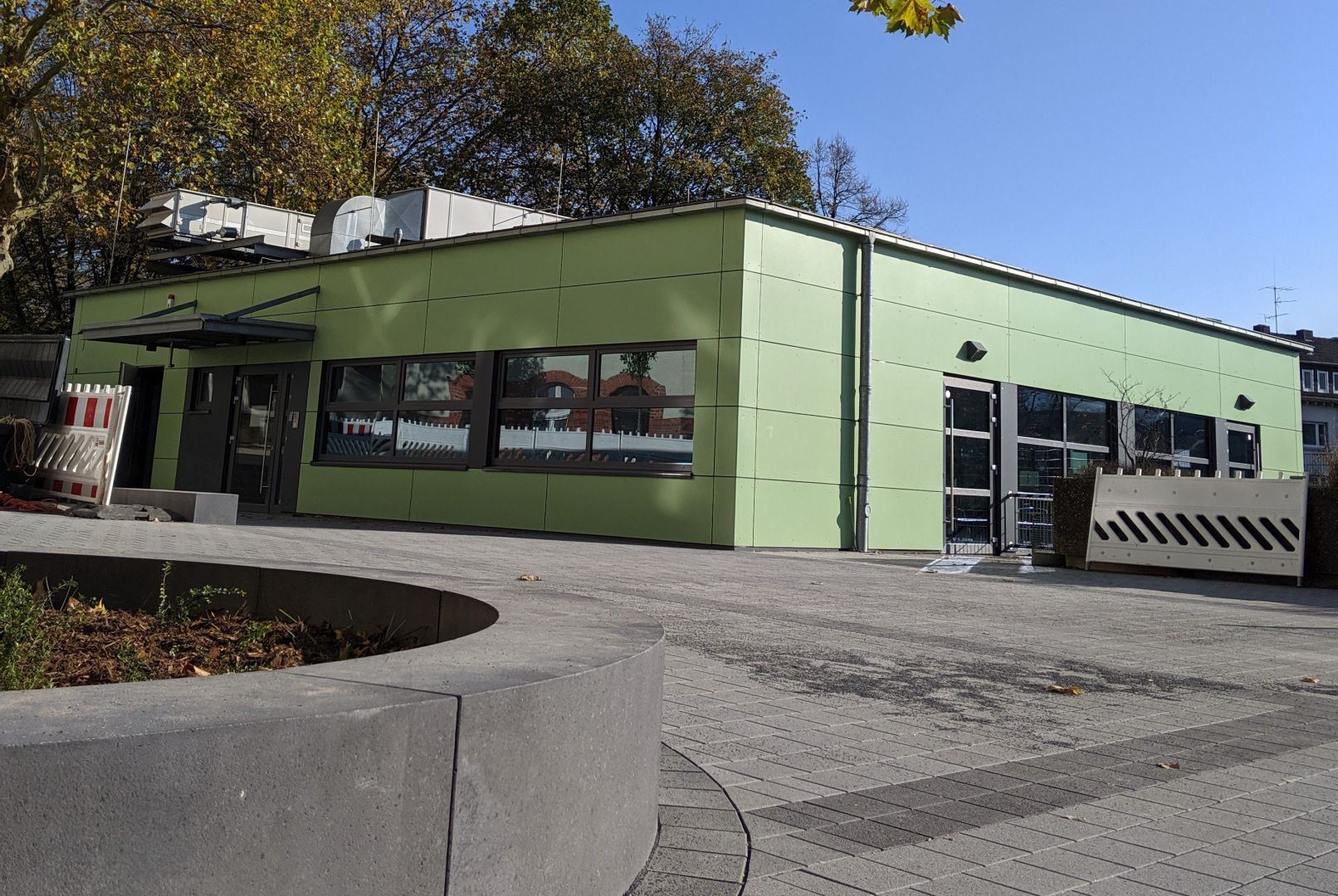 Die Sanierung unseres Schulhofs ist in vollem Gange. Jetzt wurde der erste Bauabschnitt fertiggestellt und das Ergebnis kann sich wirklich sehen lassen. Der Schulhof wurde komplett neu gepflastert, Treppen wurden durch barrierefreie Flächen ersetzt, neue Sitzmöglichkeiten geschaffen und Bäume gepflanzt.
