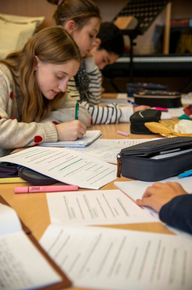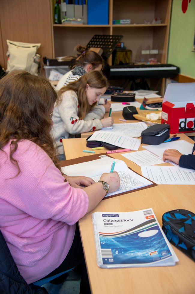 Mit großem Eifer wurden die eigenen Geschichten entworfen und zu Papier gebracht. Dabei unterstützte Dirk Walbrecker die Schülerinnen und Schüler mit wertvollen Tipps, wie man Spannung aufbaut und Figuren lebendig werden lässt. Besonders viel Freude bereitete es allen, dass manche Geschichten sogar illustriert wurden – bunte Zeichnungen erweckten die Texte zusätzlich zum Leben.