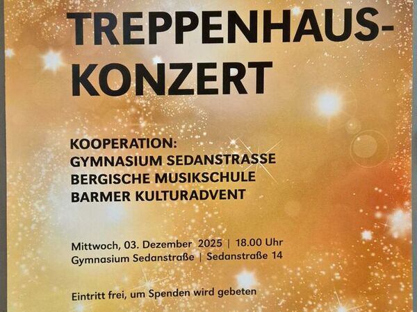 Die Fachschaft Musik und die Bergische Musikschule laden ein zum adventlichen Treppenhauskonzert. Schülerinnen und Schüler unserer Schule und der Musikschule präsentieren ihr Können und der Schulchor der Sedanstraße singt in der besonderen Atmosphäre des Treppenhauses.